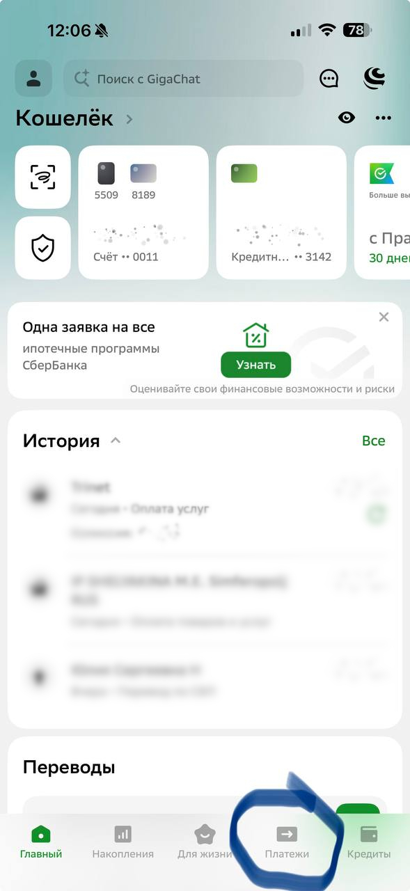 Откройте раздел «Платежи» в личном кабинете или приложении ВТБ.