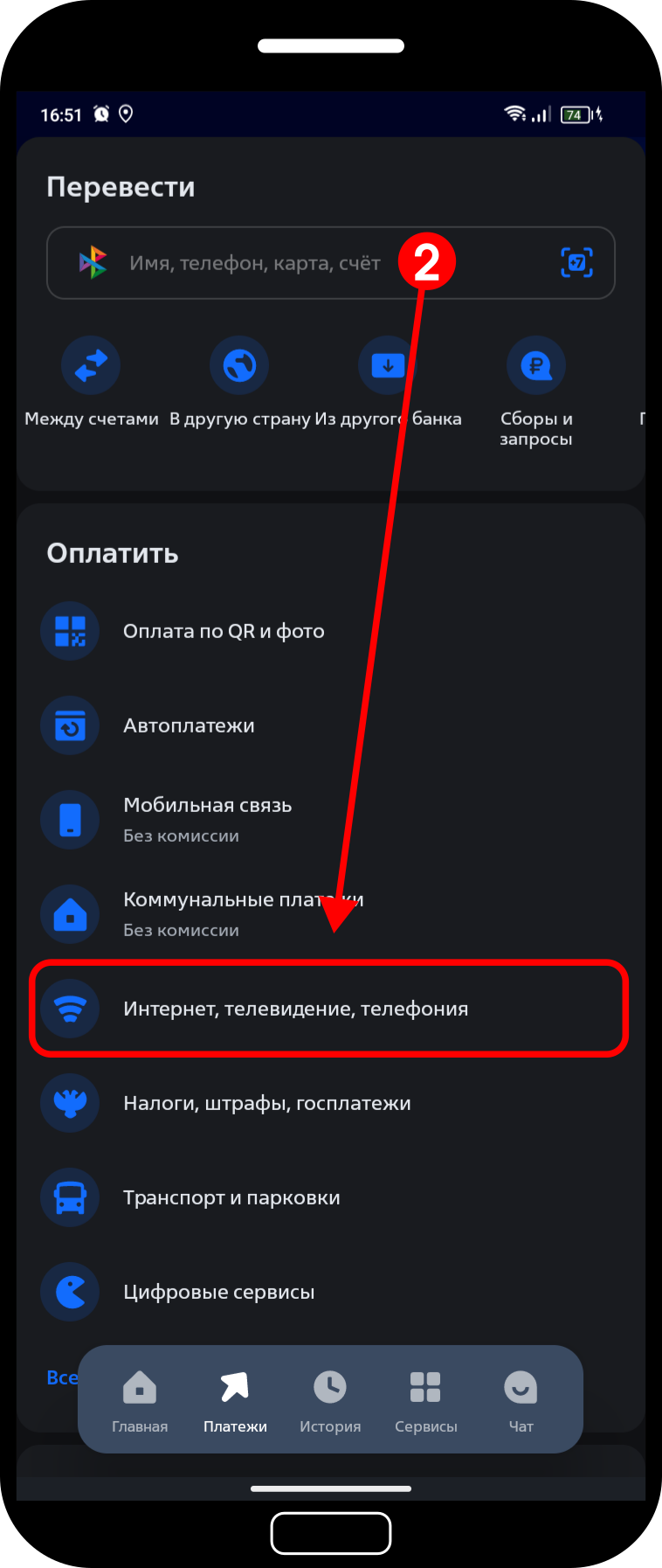 Выберите категорию «Интернет, телевидение, телефония».