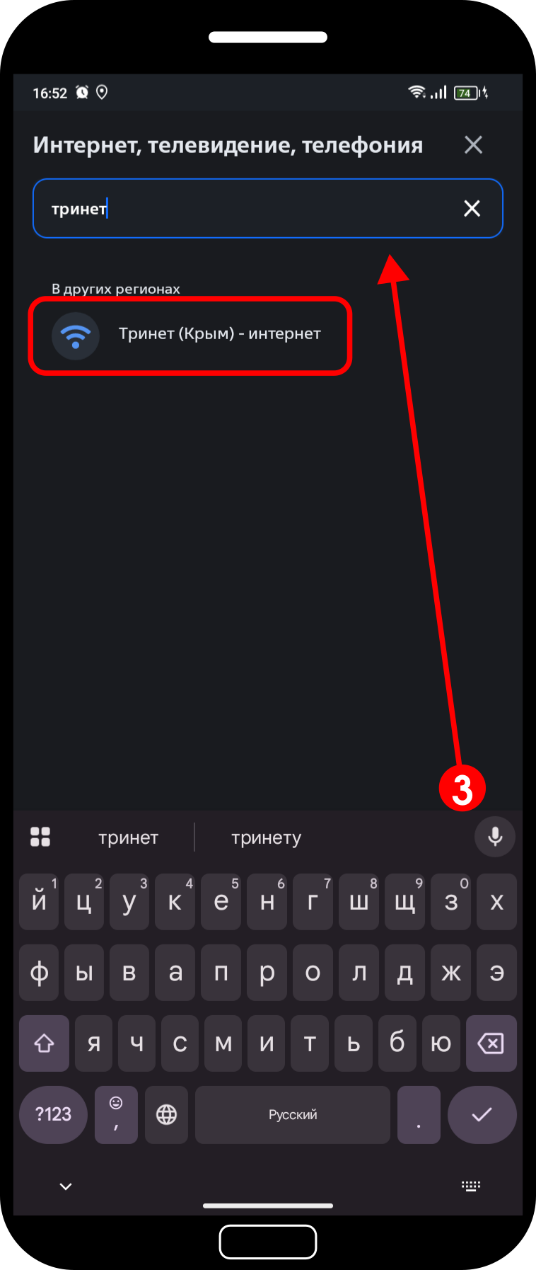 В результатах поиска выберите услугу «Тринет (Крым) — интернет».