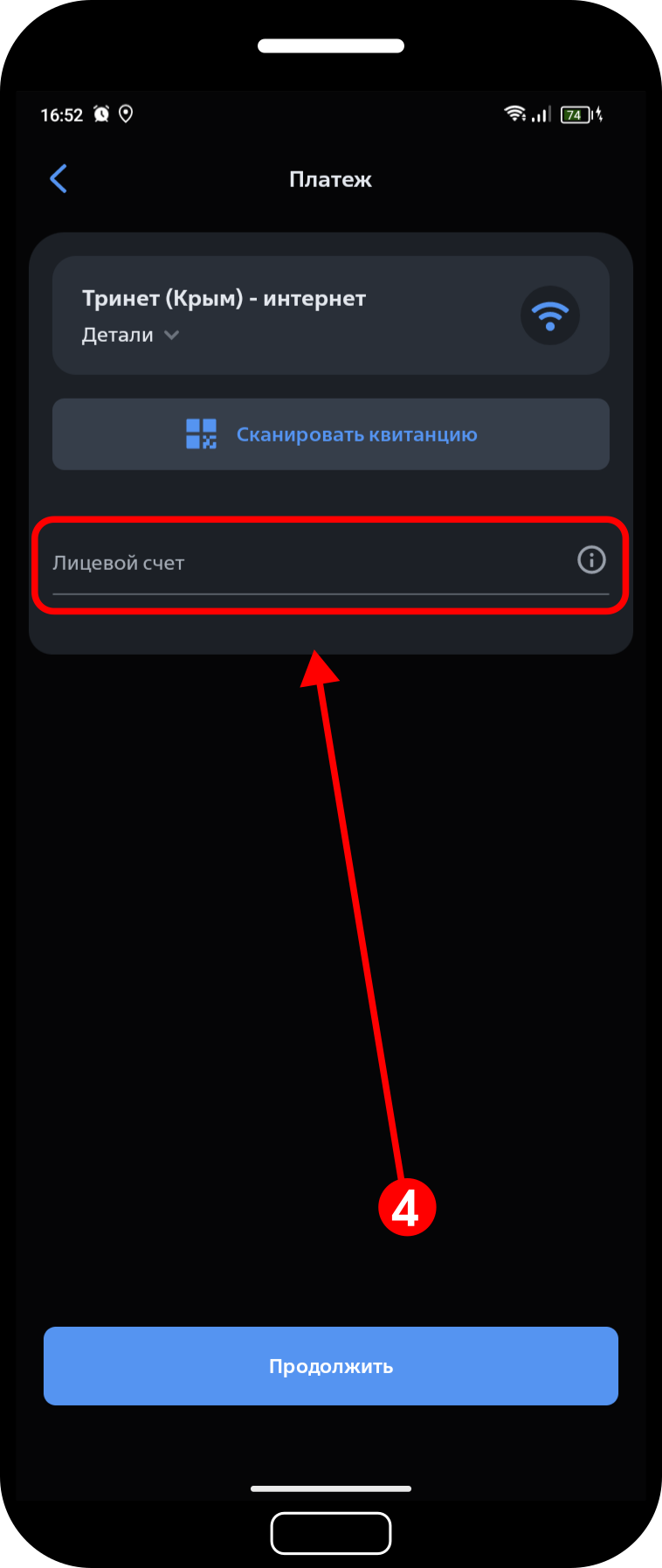 Введите свой лицевой счёт.
