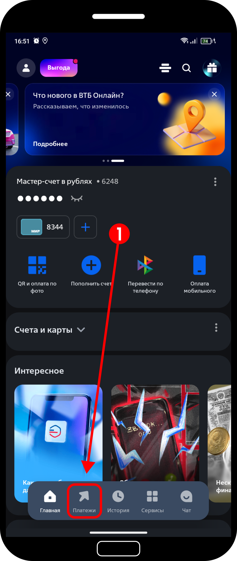 Откройте раздел «Платежи» в личном кабинете или приложении ВТБ.